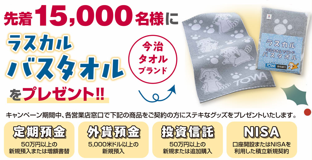 ●懸賞金はご当選されたお客様の総合口座の普通預金にご入金いたします。